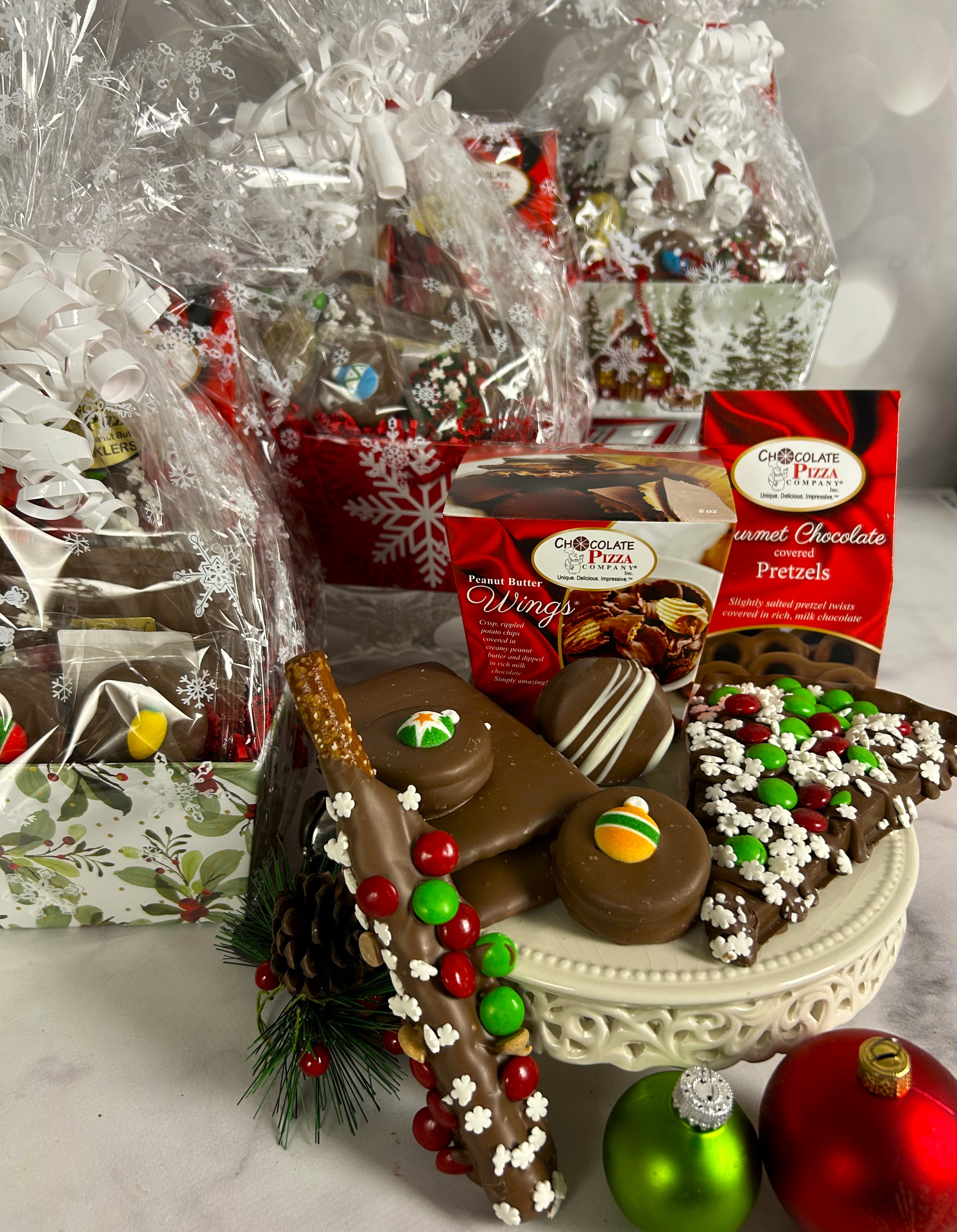 Happy Holidays Gift Basket | Snowflake Chocolate Pizza & gourmet treats