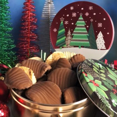 Are you ready for a sweet, savory, crunchy and creamy combo? Then you definitely need our holiday gourmet Peanut Butter Wings in your life this holiday season. If you’re wondering, “What in the world are Peanut Butter Wings,” we’ll describe them. We begin with hearty, rippled potato chips. We slather them in creamy peanut butter, then dip them into your choice of our signature dark or milk chocolate. Our chocolate makes our wings so special: it’s a special blend of creamy Swiss-style chocolate blended with our special 100-year-old toffee recipe.