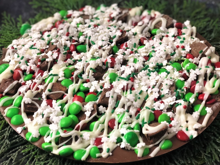 Don’t just give out ordinary gift baskets this year. If you’re looking for a festive chocolate treat that’s all dressed up for the holiday season, look no further! Our Holiday Chocolate Pizza Avalanche is as amazing as it sounds. This over-the-top chocolate creation will bring great joy to your taste buds as you luxuriate in an ocean of chocolate this Christmas.